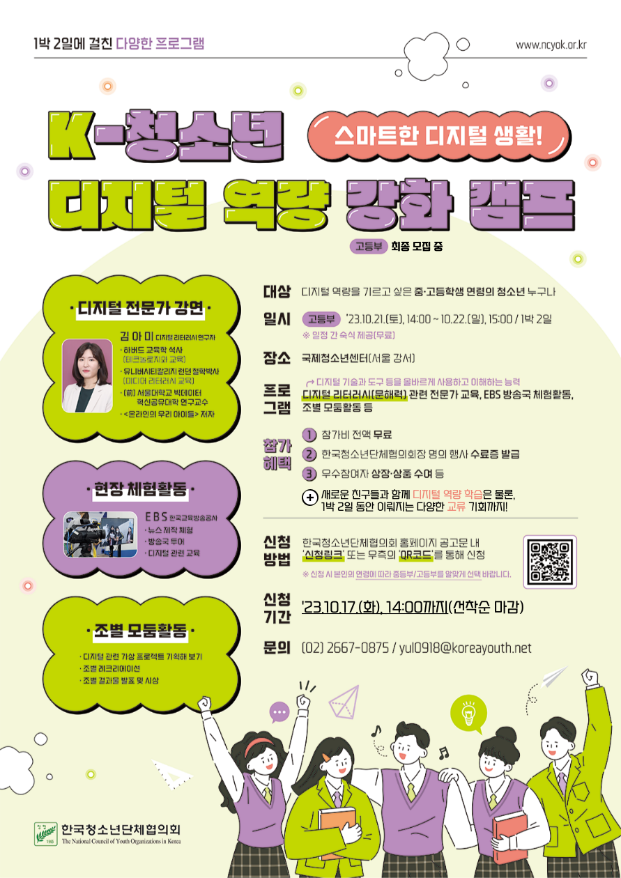 다양한 프로그램이 담긴 'K-청소년 디지털 역량강화 캠프'를 오는 10월 개최합니다.
