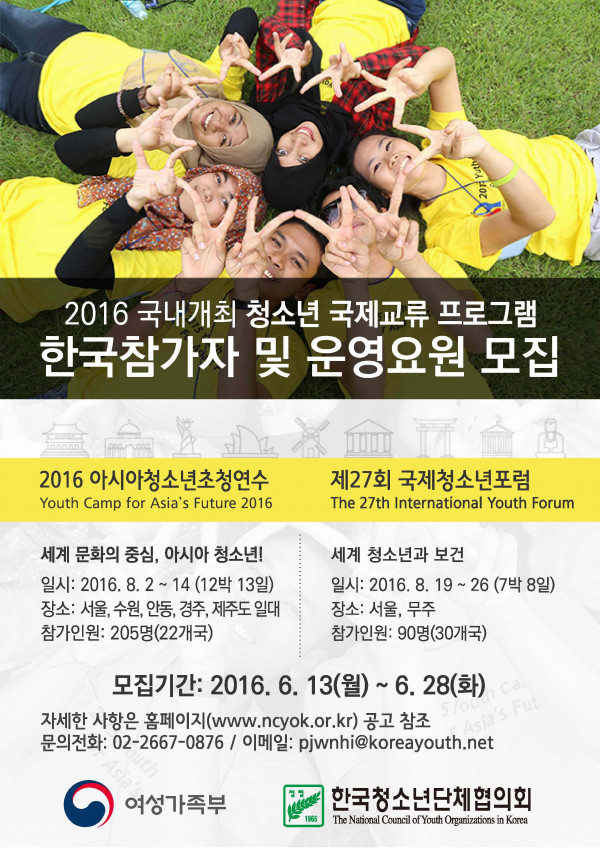 2016년 국내개최 청소년 국제교류행사 한국참가자 및 운영요원 모집