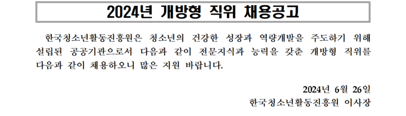 [한국청소년활동진흥원] 2024년 개방형 직위 채용공고