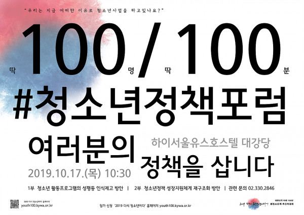 「2019 다시 청소년이다」 청소년정책포럼 개최 안내