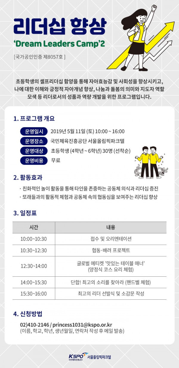 (서울올림픽파크텔) 리더십향상 프로그램 및 도전!올림픽뉴스메이커 프로그램 참가 안내 페이지 정보 작성자 관리자 작성일2019.05.07 조회19,967회 댓글0건 본문 바로가기 링크 : (서울올림픽파크텔) 리더삽향상 프로그램 및 도전!올림픽뉴스메이커 프로그램 참가 안내 . 댓글목록 등록된 댓글이 없습니다. 이전글 다음글 목록