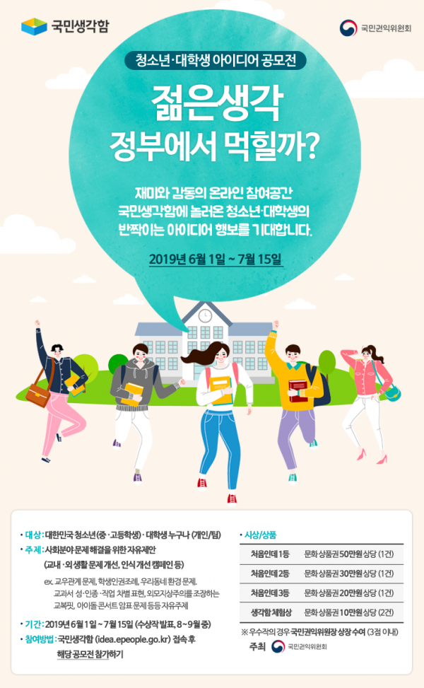 (국민권익위) 국민생각함 '청소년·대학생 아이디어 공모전' 실시 안내