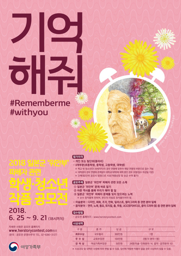 (여가부) 2018년 일본군 위안부 피해자 관련 학생 청소년 작품공모전 개최 안내