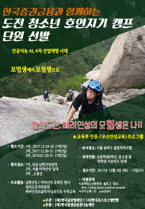 [출처] <도전 청소년 호연지기 캠프> 선발 안내|작성자 로체청소년원정대