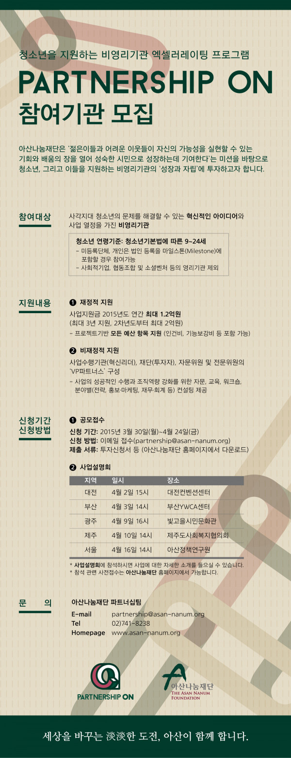 2015년 아산나눔재단 ‘파트너십 온’ 공모사업 안내