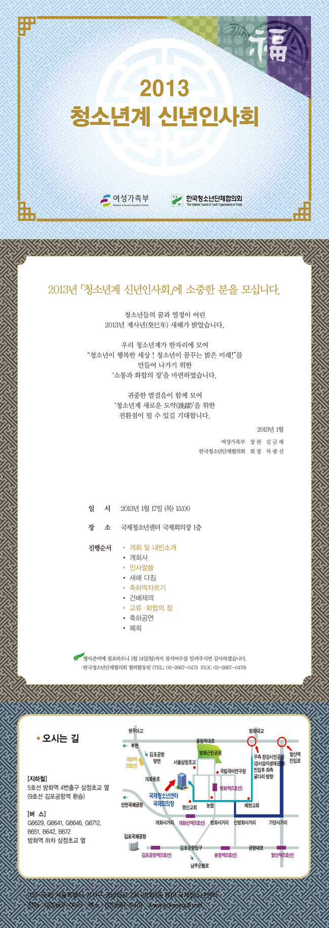 [공지] 2013년 청소년계 신년인사회 개최 페이지 정보 작성자 관리자 작성일2013.01.08 조회12,330회 댓글0건 본문 댓글목록 등록된 댓글이 없습니다. 이전글 다음글 목록