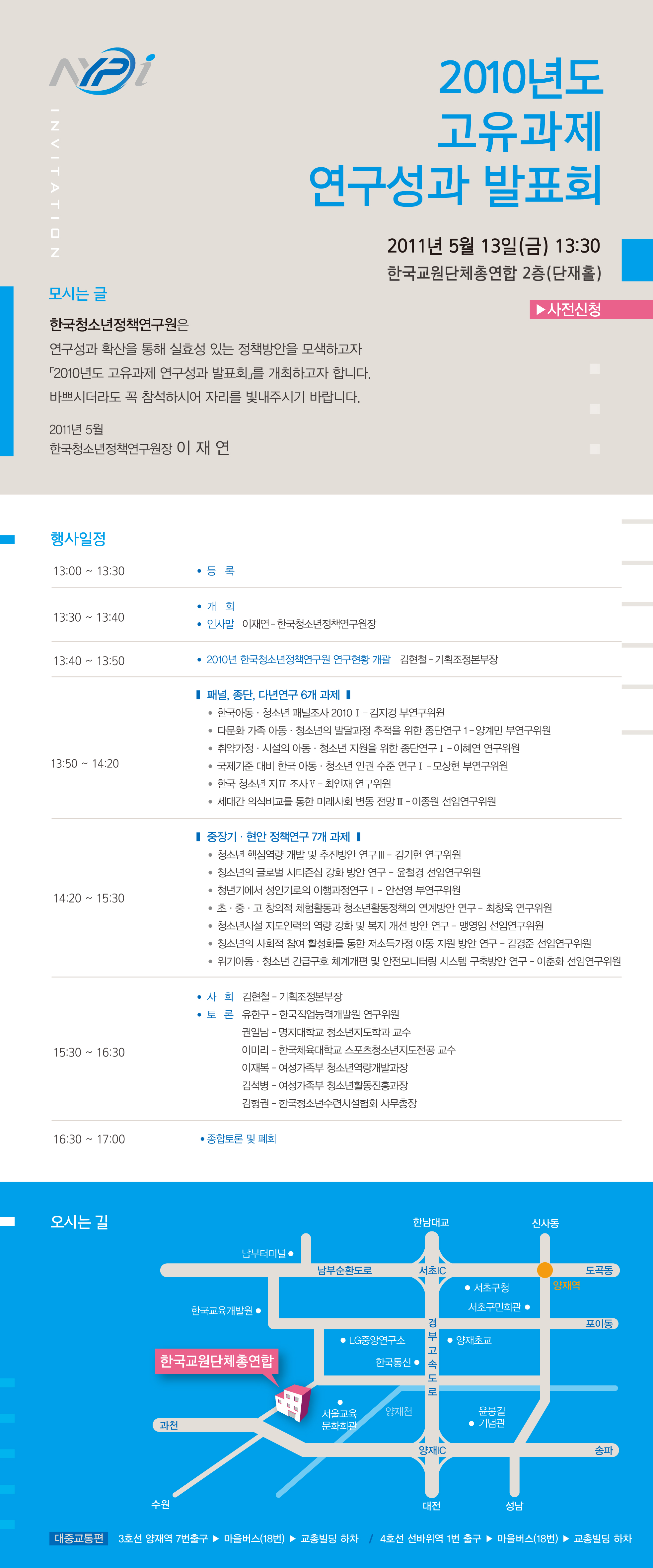 [공지]2010년도 고유과제 연구성과 발표회 페이지 정보 작성자 관리자 작성일2011.05.11 조회11,752회 댓글0건 본문 댓글목록 등록된 댓글이 없습니다. 이전글 다음글 목록