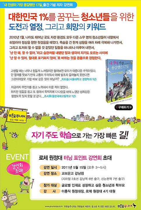 [공지]한국로체청소년원정대_《내 생애 가장 용감했던 17일》 출간 기념 저자 강연회