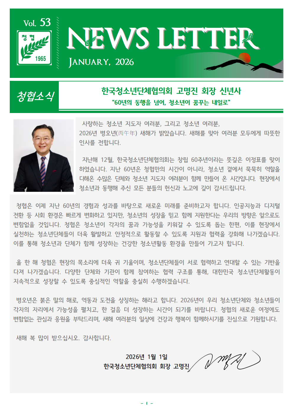 ♠ 청협 뉴스레터 2026년 1월호 발간 ♠