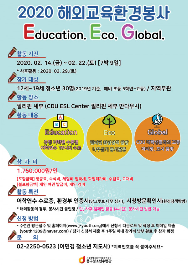 * 문의 : 02)2250-0523 (이민경 청소년지도사)