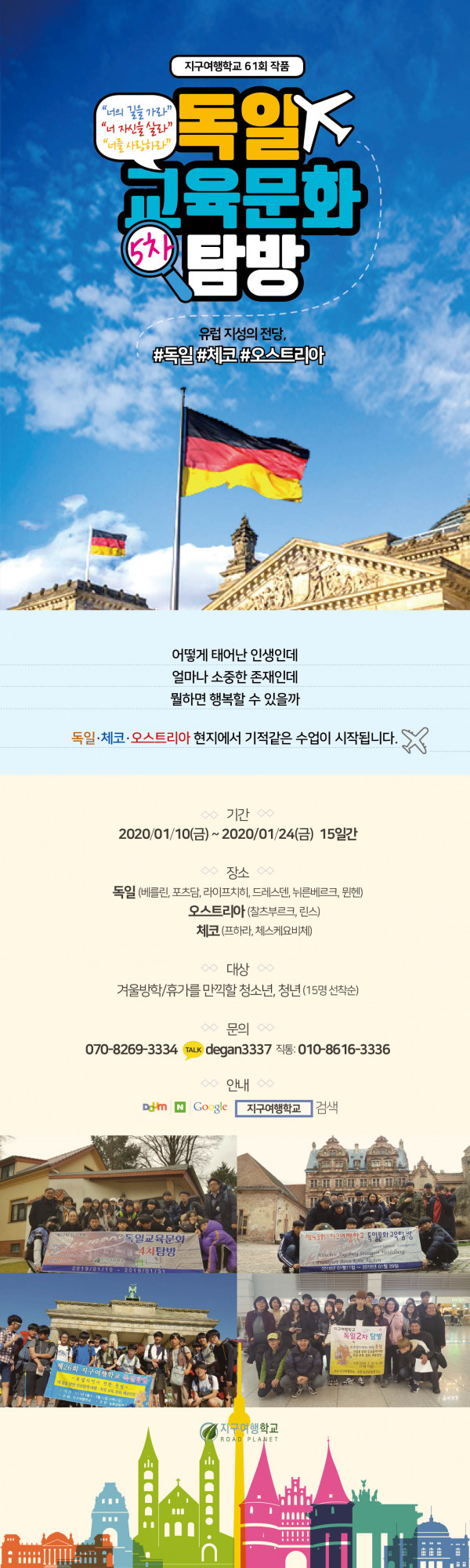 지구여행학교 독일교육문화 5차탐방 안내문 페이지 정보 작성자 전보미 작성일2019.09.10 조회11,004회 댓글0건 본문 http://cafe.daum.net/Confucian 댓글목록 등록된 댓글이 없습니다. 이전글 다음글 목록