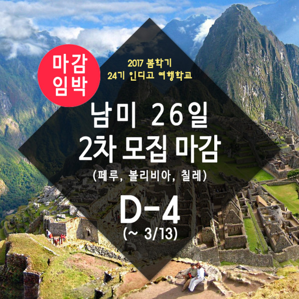 [인디고 여행학교] 남미 3개국 2차모집 마감 4일전!!