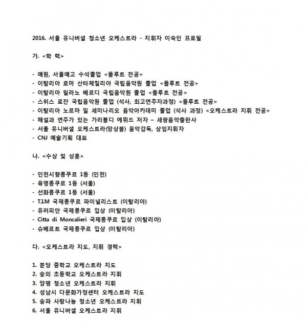 6. 기타 청소년 오케스트라 모집 요강에 관련한 자세한 사항은