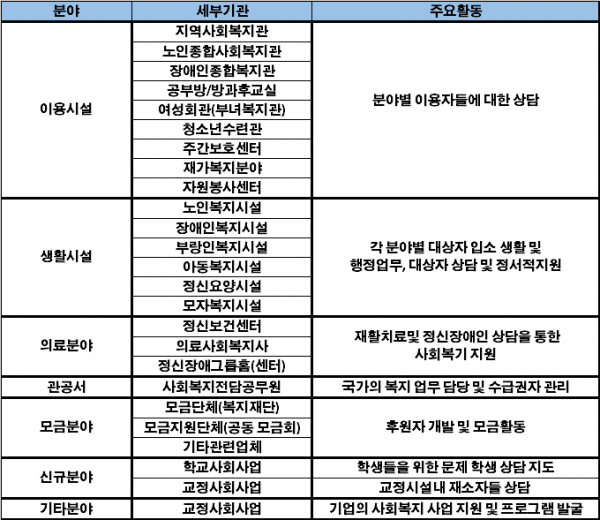 ↘사회복지관련수업 13과목 + 실습1과목