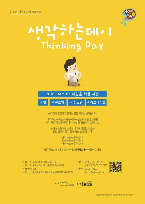 [모집] 송석복지재단 생각놀이터 프로젝트 "생각하는데이(Thinking Day)!"_내일을 위한 시간