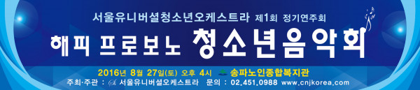 2016. 서울 유니버셜 청소년 오케스트라, 문화나눔,‘해피 프로보노(Happy Probono)’ 청소년 음악회 안내