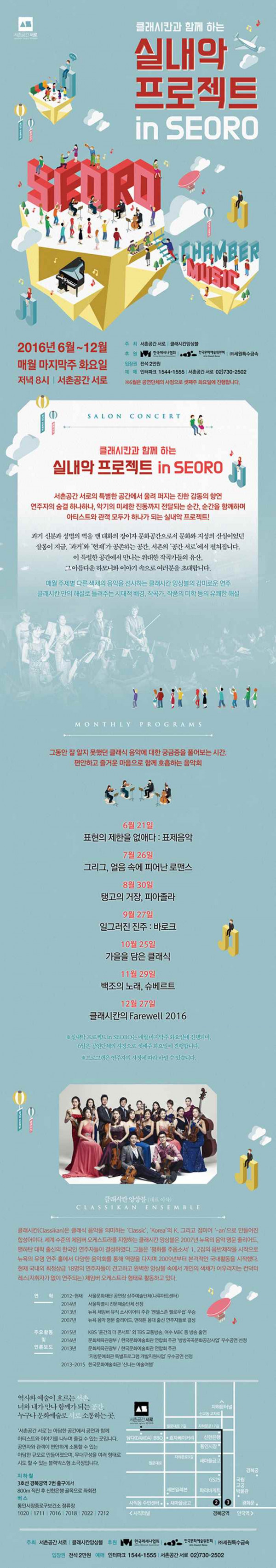 감각있는 국내 정상급 연주자들로 구성된 클래시칸 앙상블의 ‘클래시칸과 함께 하는 실내악 프로젝트 in SEORO’