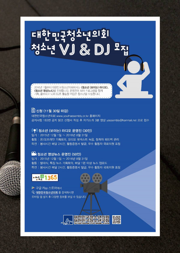 [대한민국청소년의회] 청소년 VJ & DJ 모집 (11/30)