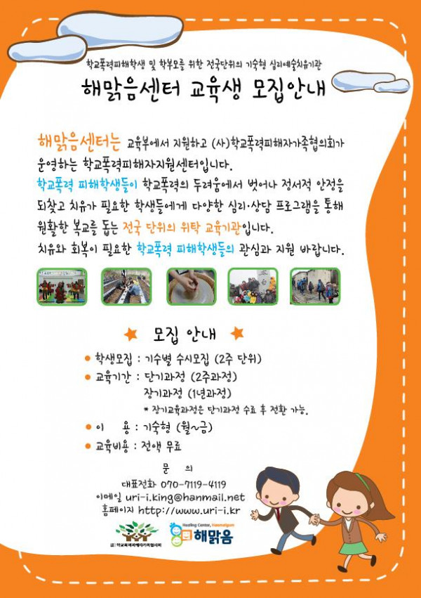 학교폭력피해자치유센터★해맑음센터★ 모집안내