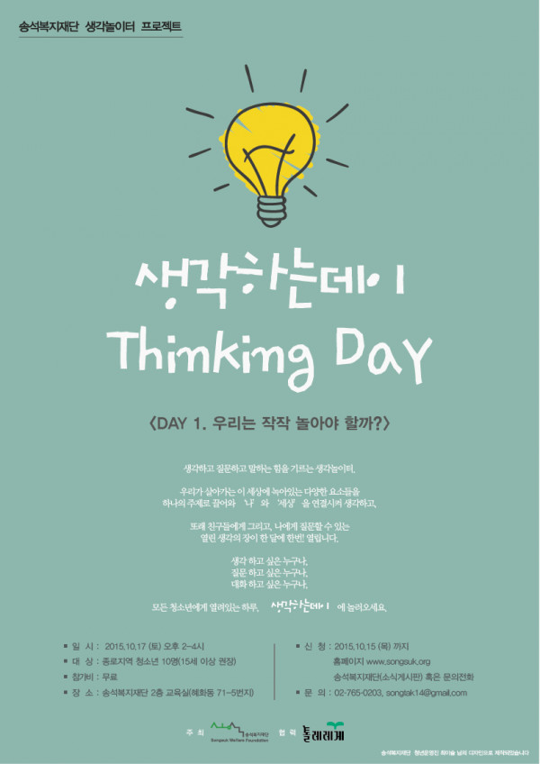 [모집] 송석복지재단 생각놀이터 프로젝트 "생각하는데이(Thinking Day)!"