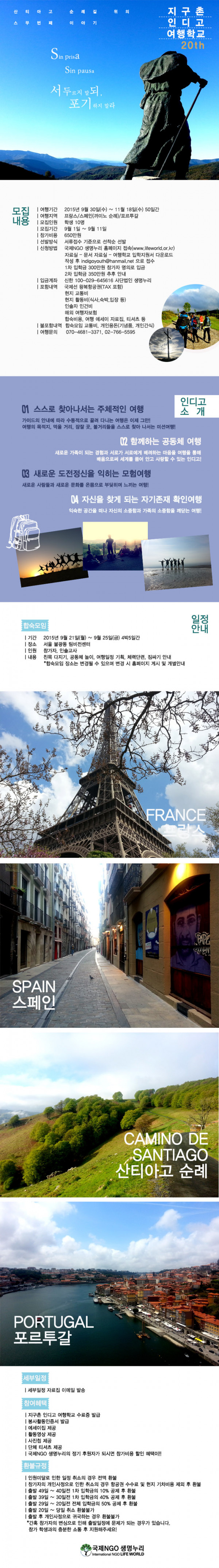[추가모집][인디고 여행학교] Sin Prisa Sin PauSa 스페인, 프랑스, 포르투칼 유럽 3개국 - 산티아고 순례길 …