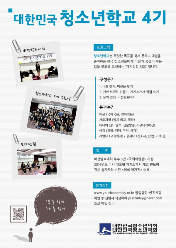 대한민국청소년의회 <청소년 학교 4기> 참가자 모집
