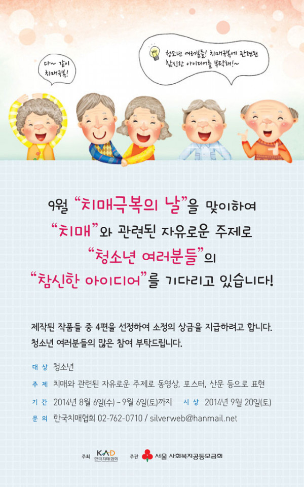 한국치매협회에서 청소년 여러분들의 참신한 아이디어를 기다립니다!!