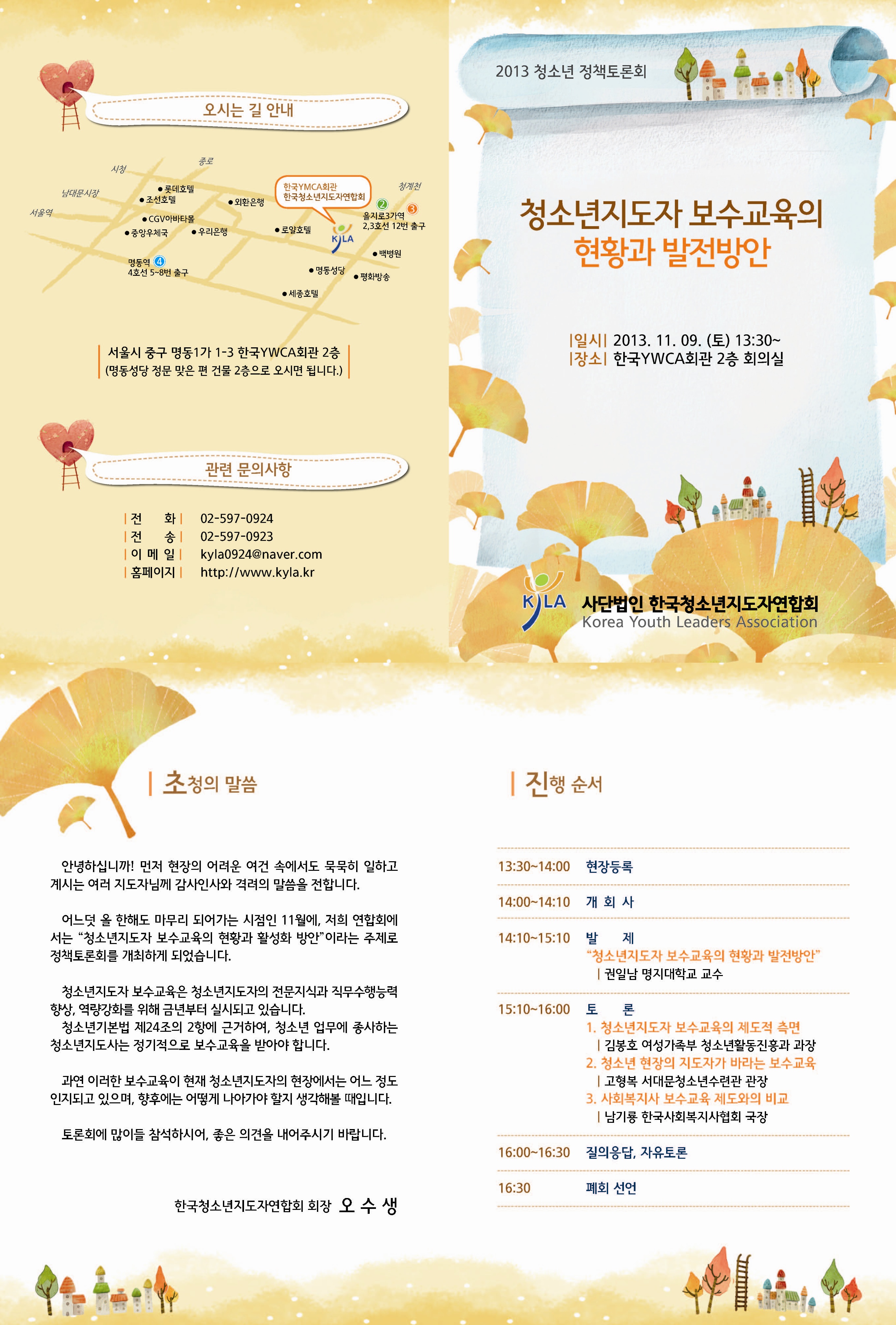 [한국청소년지도자연합회] 2013 청소년 정책토론회(11/09 토) 안내