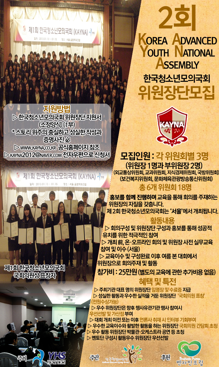 제 2회 한국 청소년 모의국회 (KAYNA) 상임위원장단 2차 모집 공고