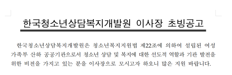 [한국상담복지개발원] 한국상담복지개발원 이사장 초빙공고 안내