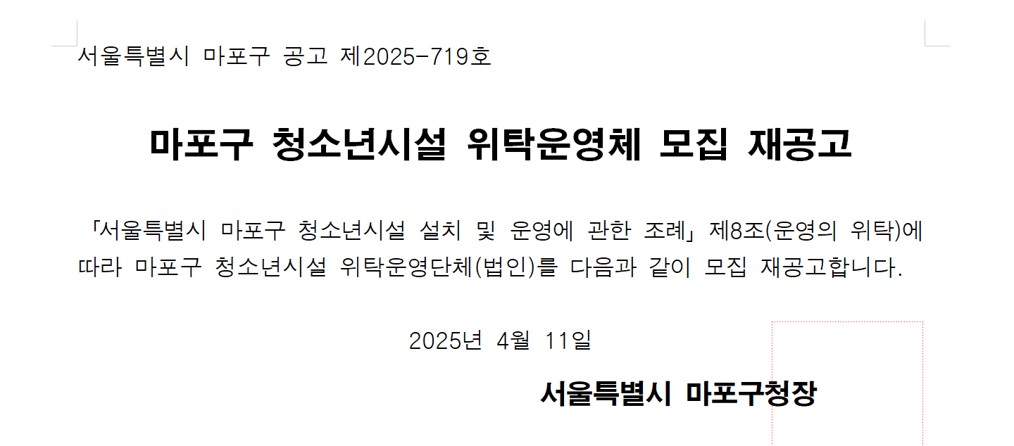 2025년 마포구 청소년시설 위탁운영체 모집 재공고문.hwp