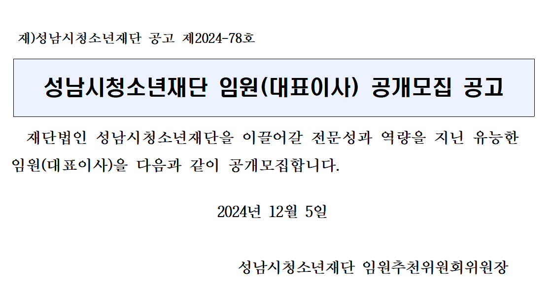 [성남시청소년재단] 임원(대표이사) 공개모집