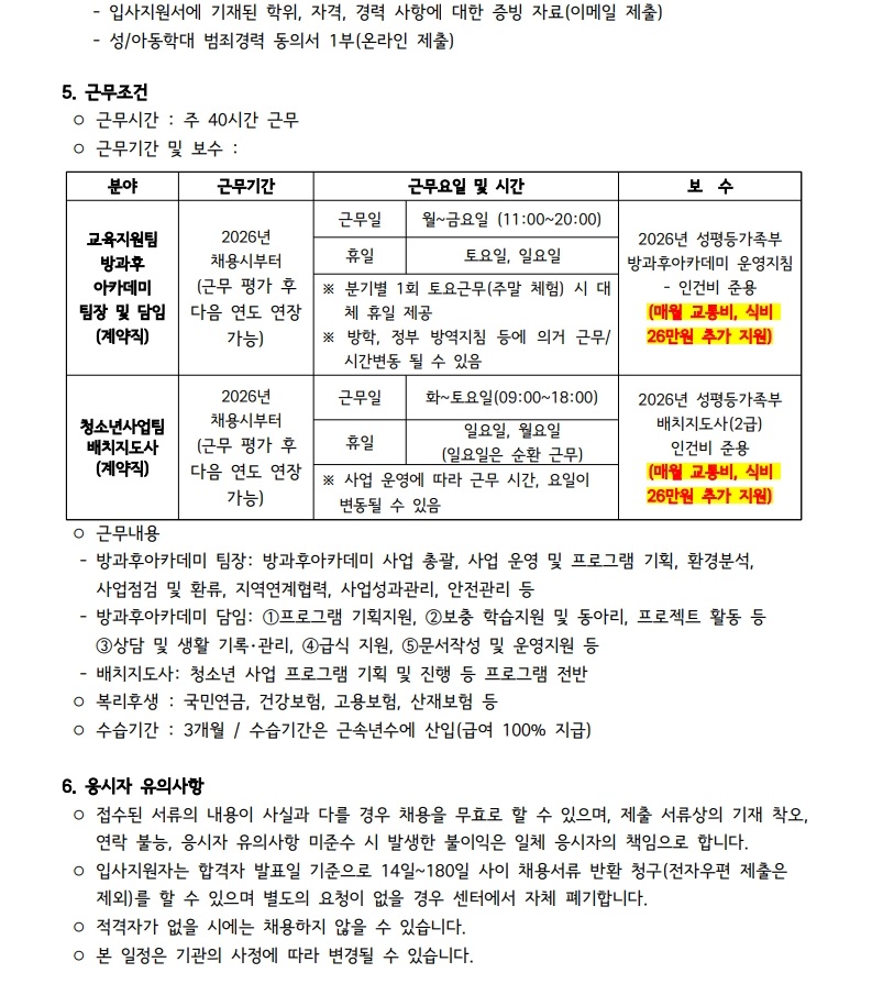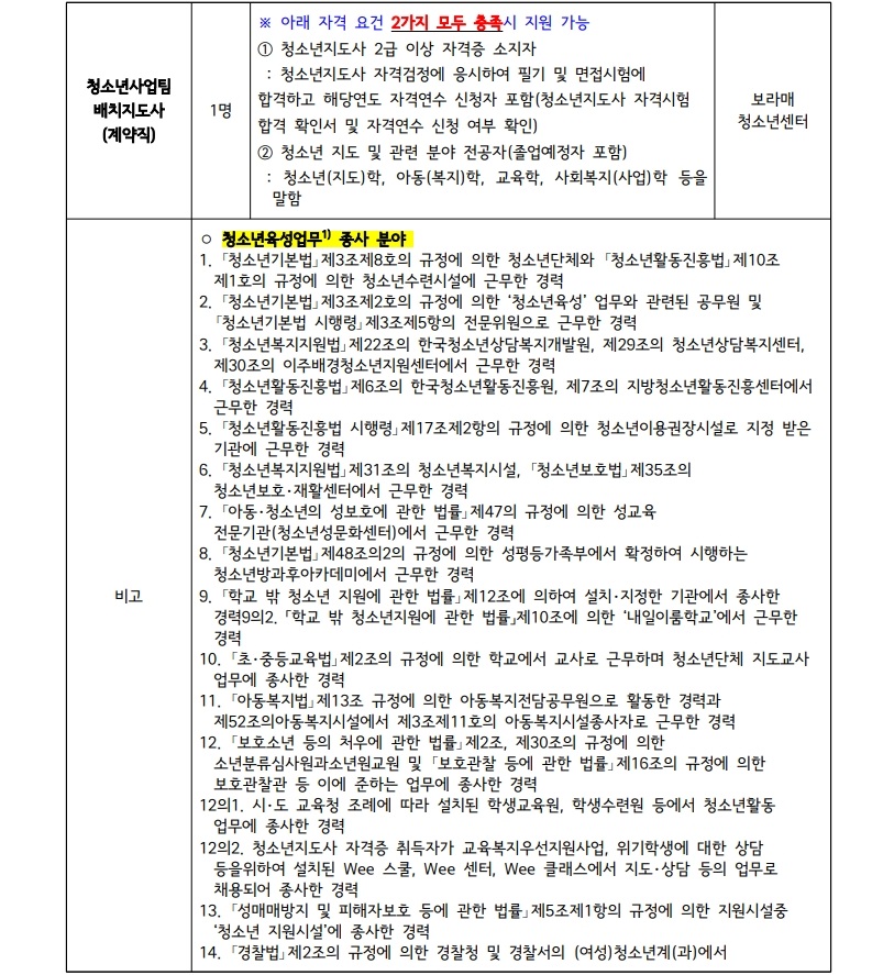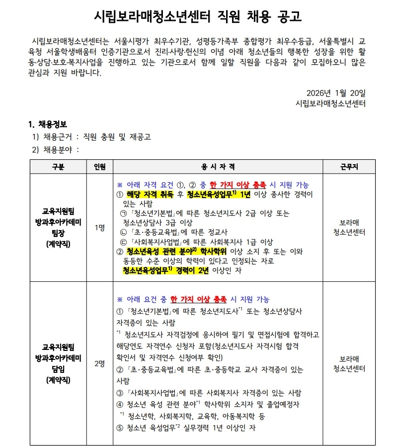 시립보라매청소년센터 교육지원팀, 청소년사업팀 계약직 채용 공고