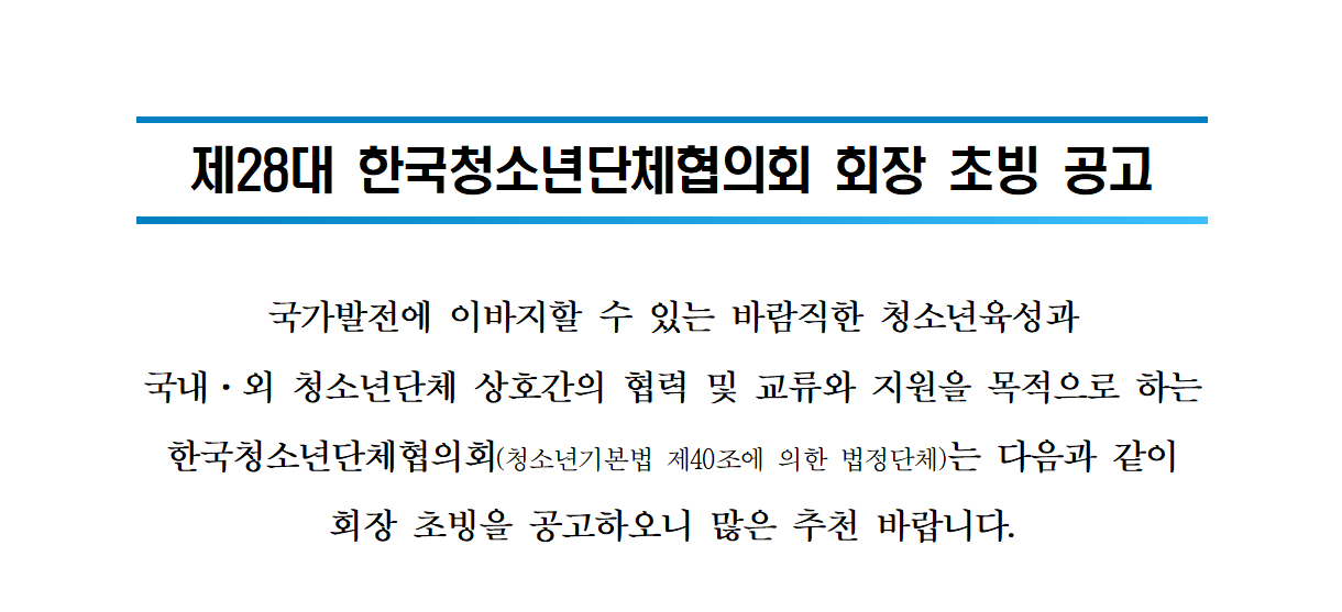 ♠ 제28대 한국청소년단체협의회 회장 초빙 공고 ♠