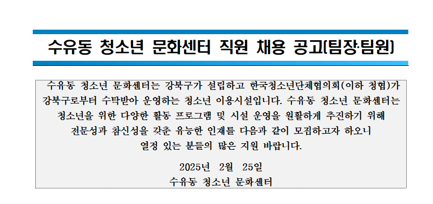 「수유동 청소년 문화센터」 직원 채용 공고.hwp