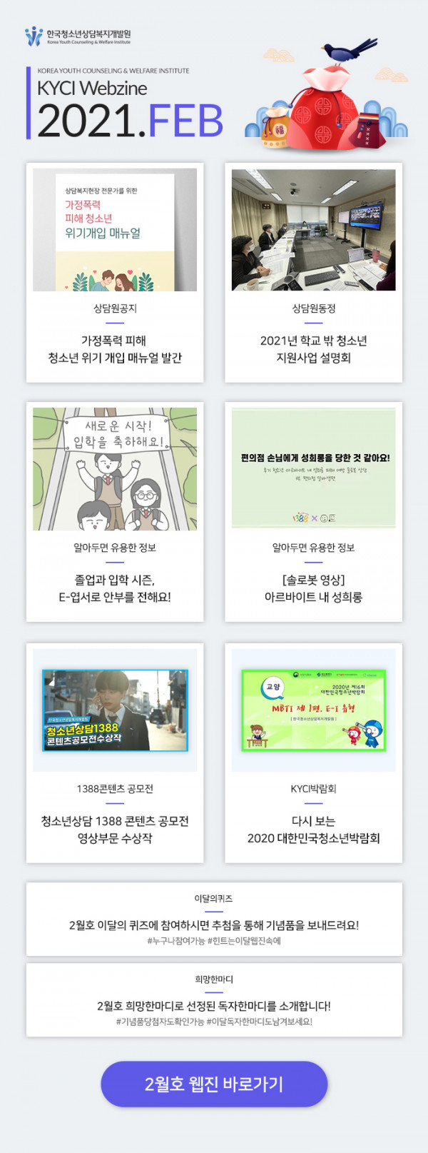 한국청소년상담복지개발원에서는 정기 웹진을 발행 중으로,