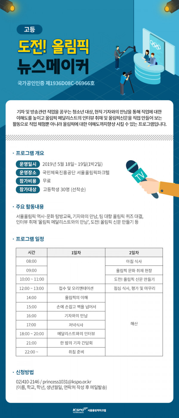 (서울올림픽파크텔) 리더십향상 프로그램 및 도전!올림픽뉴스메이커 프로그램 참가 안내 페이지 정보 작성자 관리자 작성일2019.05.07 조회20,180회 댓글0건 본문 바로가기 링크 : (서울올림픽파크텔) 리더삽향상 프로그램 및 도전!올림픽뉴스메이커 프로그램 참가 안내 . 댓글목록 등록된 댓글이 없습니다. 이전글 다음글 목록