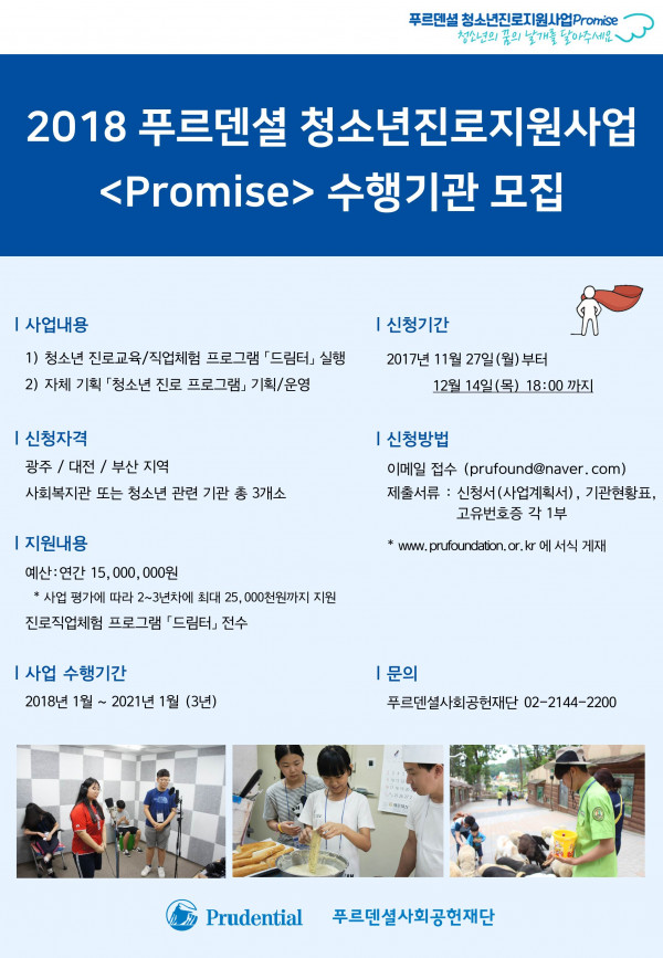 2018 푸르덴셜 청소년진로지원사업 수행기관 모집공고