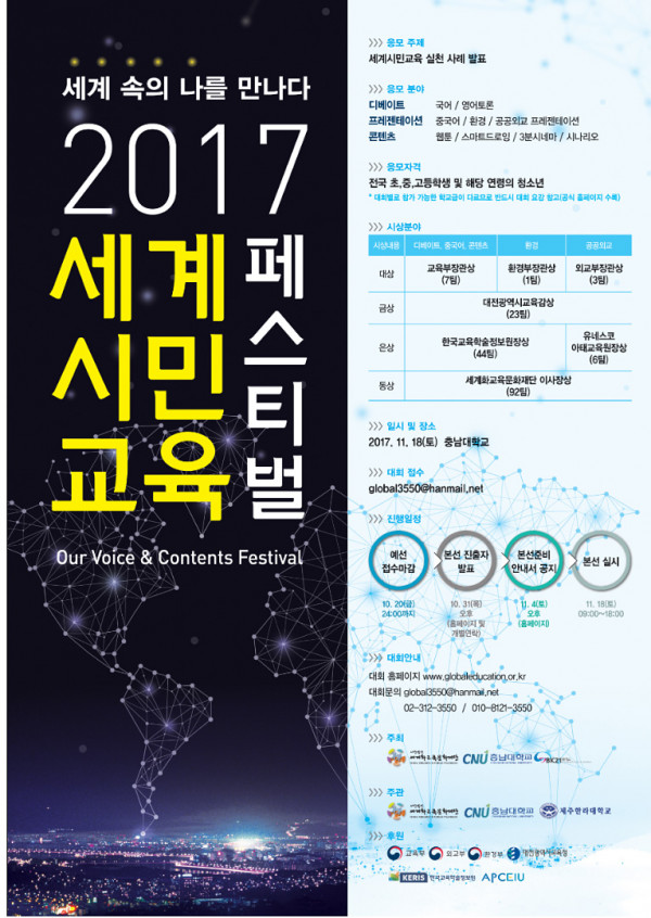 2017 세계시민교육 페스티벌 참가 안내 페이지 정보 작성자 관리자 작성일2017.09.20 조회30,002회 댓글0건 본문 . 행사홈페이지(세계화교육문화재단) 바로가기(클릭) 댓글목록 등록된 댓글이 없습니다. 이전글 다음글 목록
