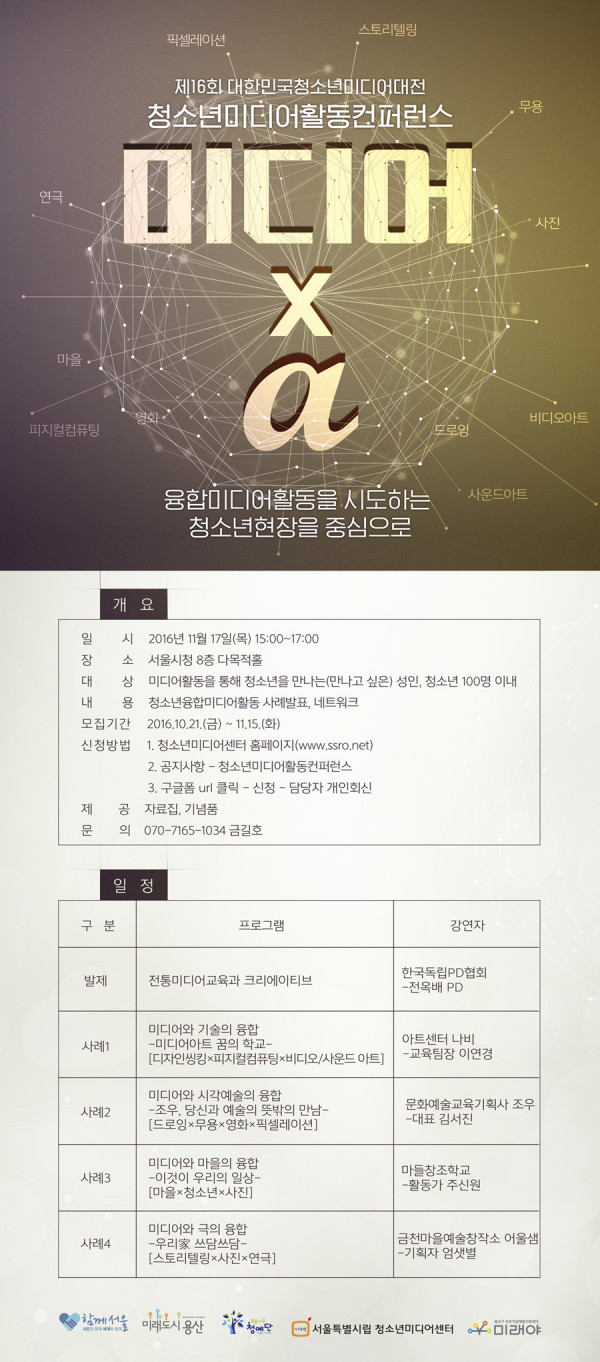제16회 대한민국청소년미디어대전 청소년미디어활동컨퍼런스 페이지 정보 작성자 관리자 작성일2016.11.09 조회15,008회 댓글0건 본문 댓글목록 등록된 댓글이 없습니다. 이전글 다음글 목록