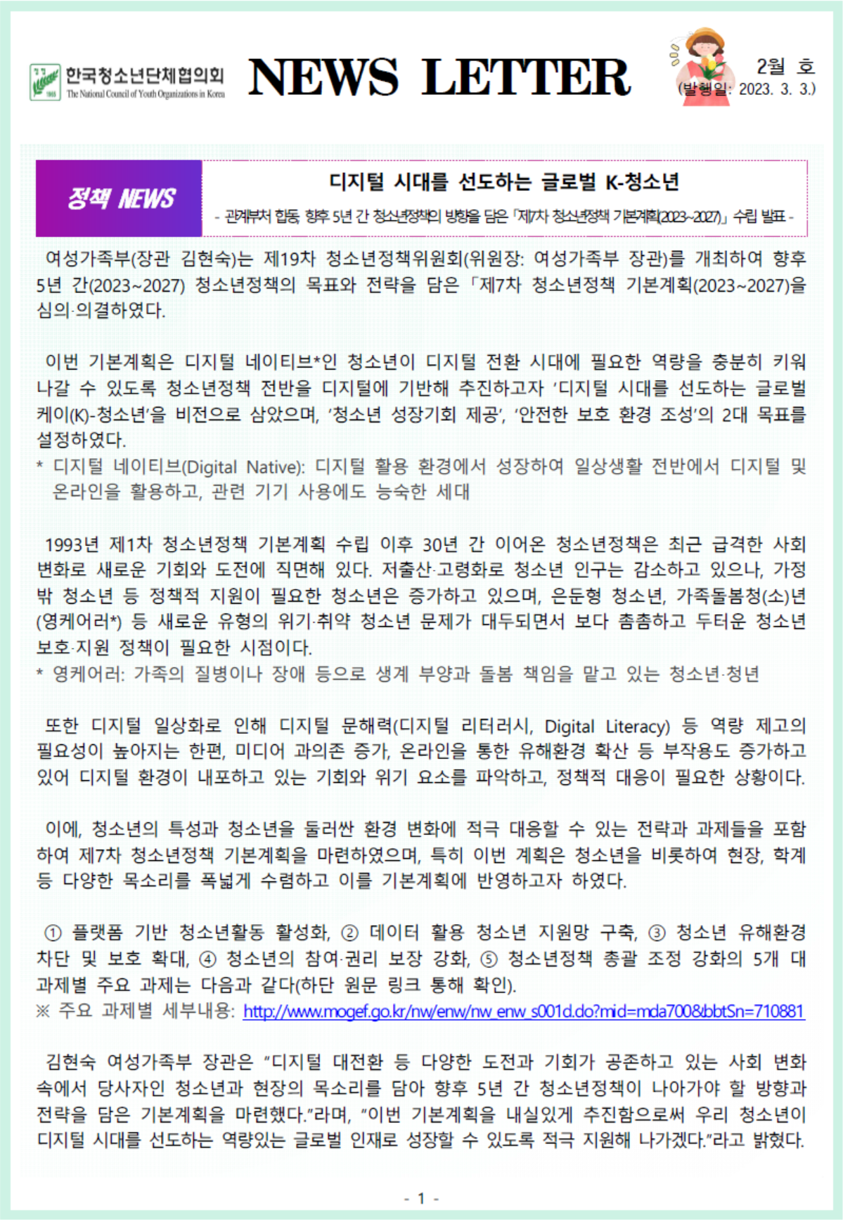 정부의 청소년정책 관련 이슈 및 회원단체의 다양한 사업들을 수합한