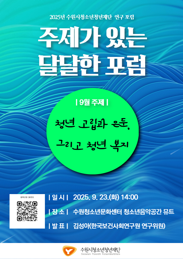 [수원시청소년청년재단] 정책 연구 포럼 9월 『주제가 있는 달달한 포럼』안내문