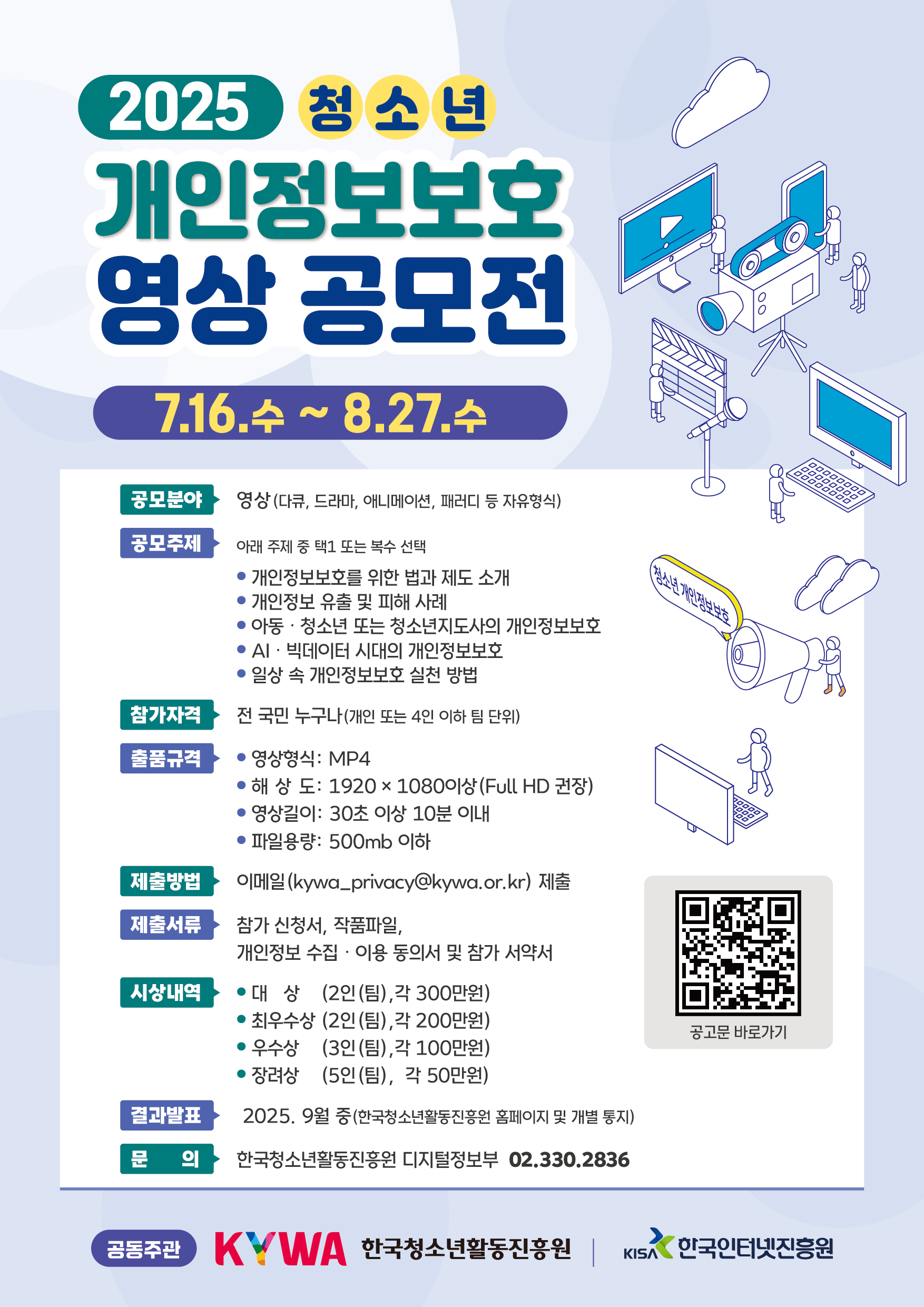 [한국청소년활동진흥원] 2025 청소년 개인정보보호 영상 공모전 개최 안내